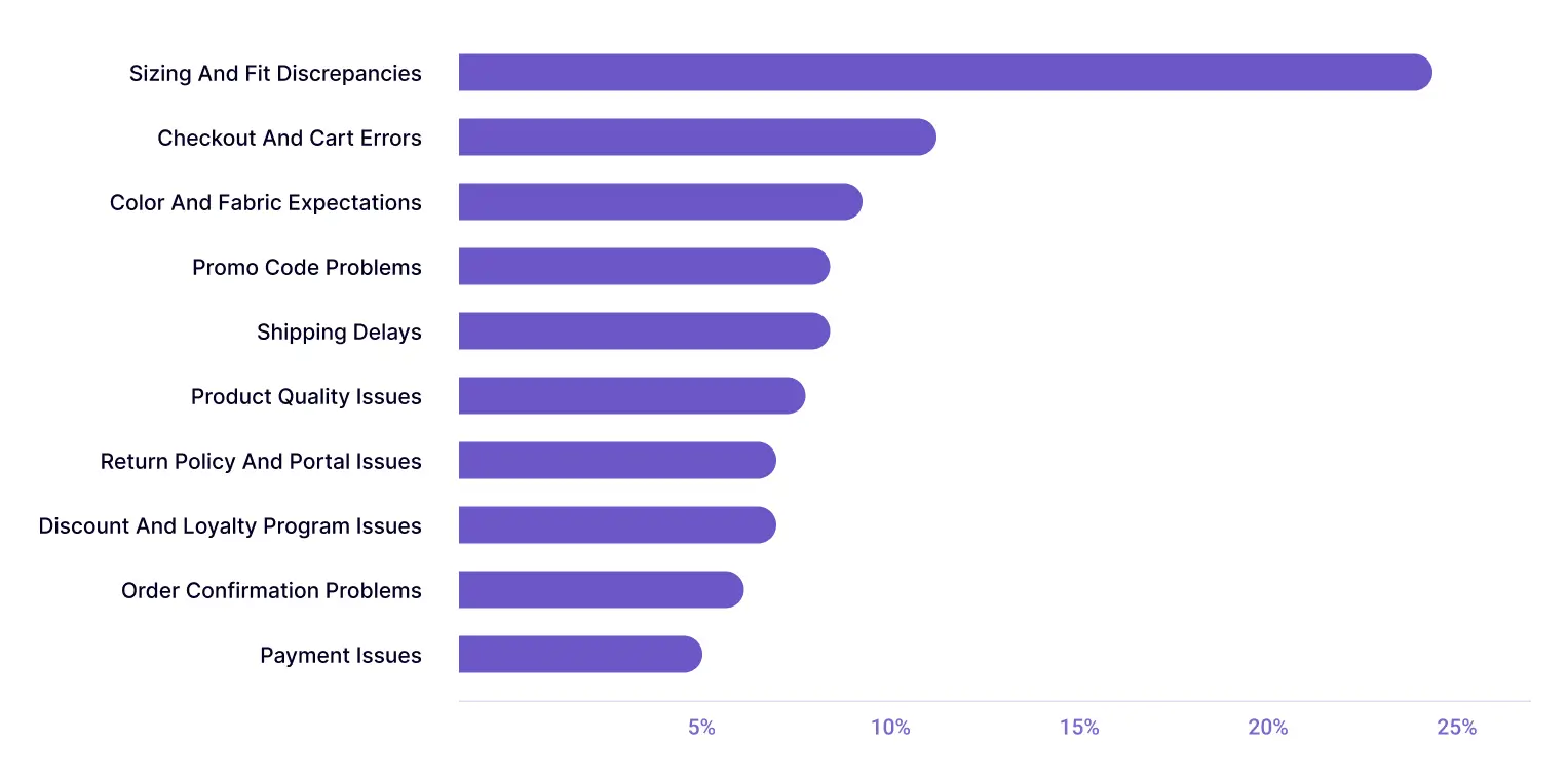 4.Interpret the results: Finally, review which themes appear most frequently to identify recurring friction points in the shopping experience, such as checkout usability or product fit, and use these insights to guide improvements in payment flow or sizing guides.